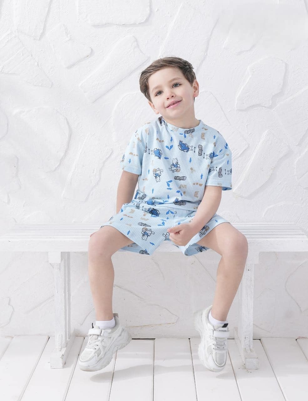 The Winnie the Pooh shorts set adds a touch of childhood innocence and fun to your little one’s look. It consists of a soft cotton t-shirt printed with beloved graphics of Winnie the Pooh and his friends from the Hundred Acre Wood in calm and gentle colors. Accompanying it are comfortable shorts made from soft, lightweight fabric in a color that coordinates with the t-shirt or features simple prints inspired by the world of Winnie the Pooh.