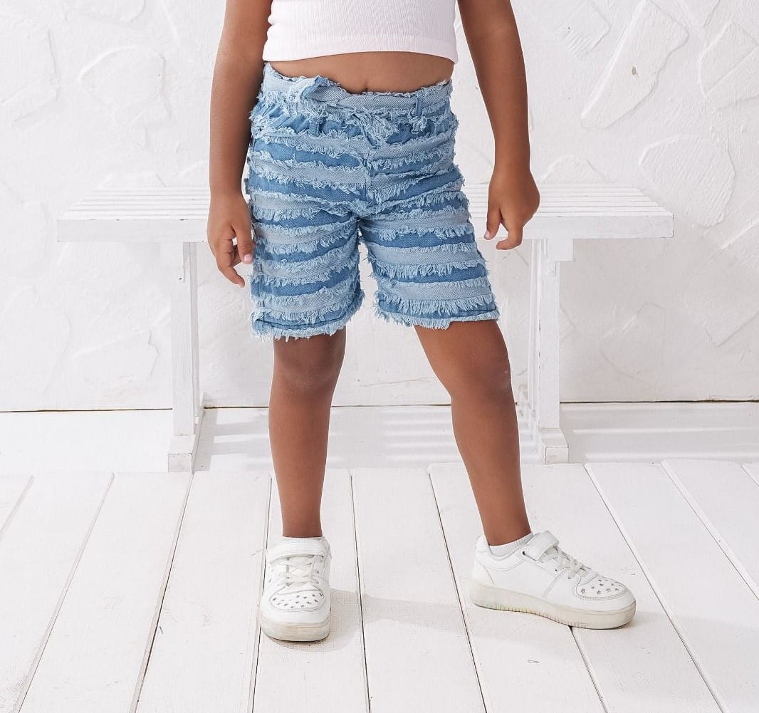 أضيفي لمسة مميزة إلى إطلالتكِ مع شورت الجينز المزين بالخطوط. هذا الشورت العصري يجمع بين راحة الجينز الكلاسيكية والجاذبية الأنيقة لنقوش الخطوط، سواء كانت طولية، عرضية، أو مائلة.