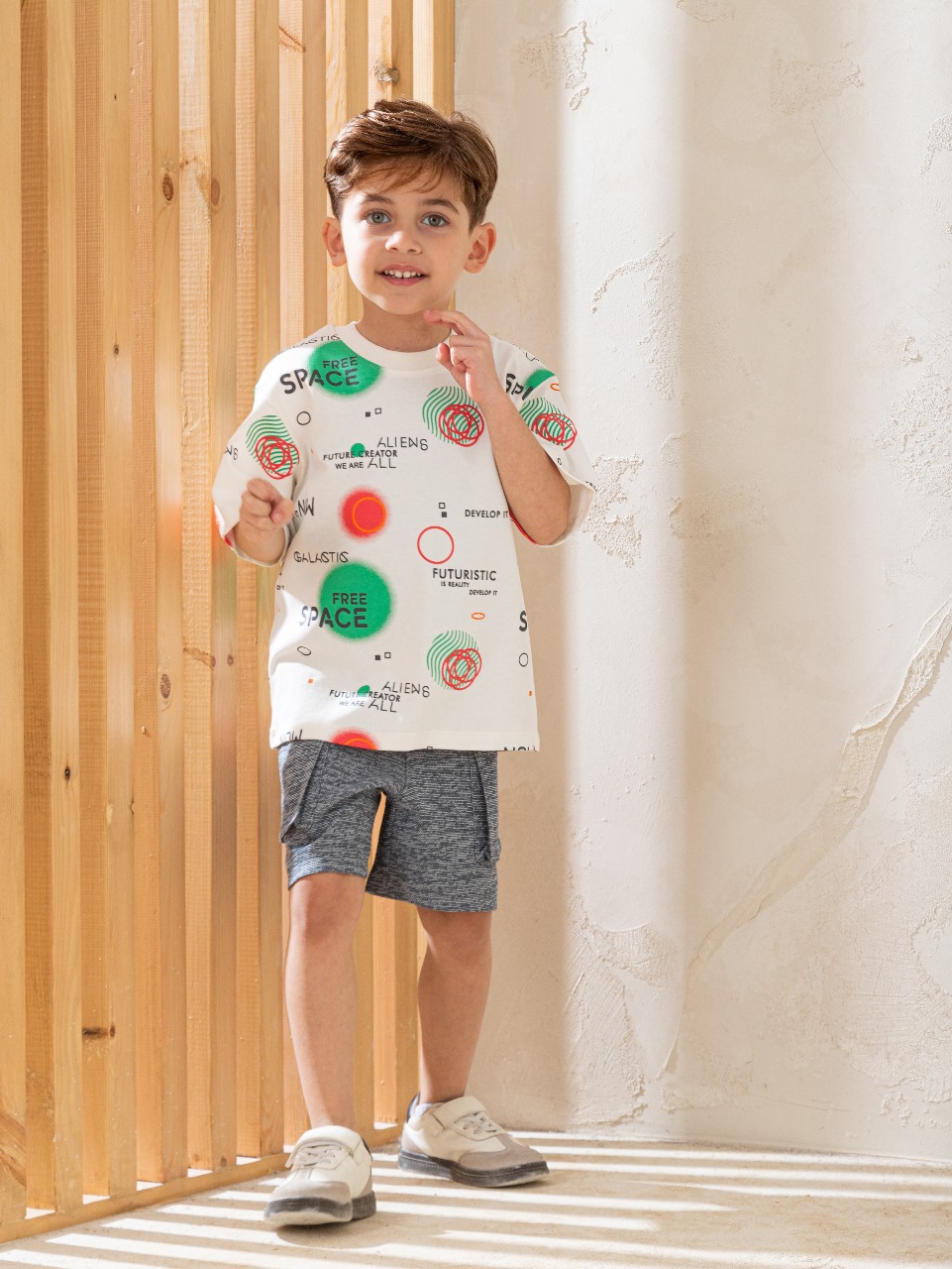طقم “Free Space” أولادي مصمم للأولاد النشيطين والمستكشفين. يتميز بتصميمات عملية وعصرية توفر الراحة وحرية الحركة. غالبًا ما يتضمن تيشيرت قطني ناعم بطبعات مستوحاة من الفضاء أو الطبيعة، وبنطلون متين وعملي بخصر مريح وجيوب. مصنوع من خامات عالية الجودة تتحمل اللعب والمغامرات اليومية. بألوان عصرية تناسب ذوق الأولاد، يعتبر طقم “Free Space” الخيار المثالي لإطلالة مريحة وعملية تدعم انطلاقهم بحرية.